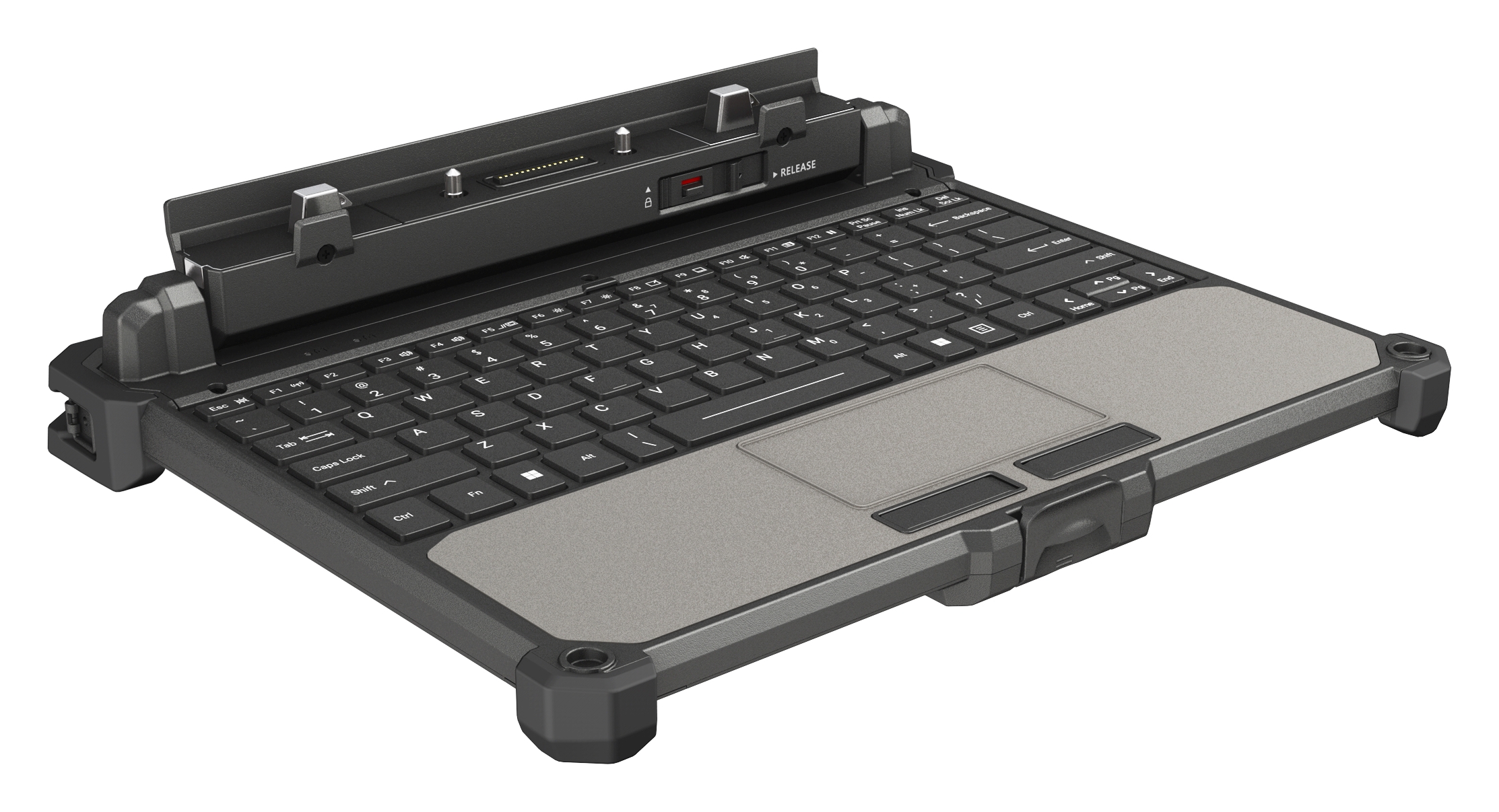 Featuring 4-level red backlighting, 83 full-size keys and an integrated touchpad, the keyboard dock allows for a user-friendly, laptop-like operation to minimize mistakes and increase the efficiency as you perform data-intensive tasks. It also carries a variety of I/O ports for connections to peripherals and other devices. Its Double-locking mechanism strengthens the tablet-keyboard connection and prevents the keyboard from accidentally falling off.